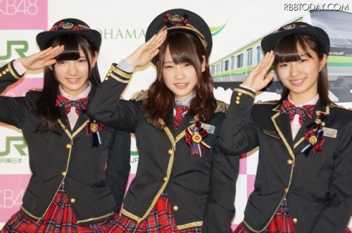 ☆AKB48の川栄李奈 大島涼花、岡田奈々、神奈川県出身メンバー3名が29日、「JR横浜線新型車両導入キャンペーン発表会」に出席、新型車両「E233系」が導入されるJR横浜線の宣伝担当に就任した。 AKB48を宣伝担当に起用するキャンペーンは、JR横浜線にデビューする新型車両E233系の導入告知を目的にしたもの。 発表会ではJR横浜線に関するクイズがメンバー達に出題され、「日産スタジアムの横浜線最寄駅は?」の質問に、「さいたまスーパーアリーナ」と勘違いしたメンバーの川栄が「さいたまえき」(正解:小机)と珍解答、その後も「駅名のトオカイチバを漢字で書くと?」との質問に「遠花一場」(正解:十日市場)、「JRは何の略?」には「Just reeru」(正解:Japan Railway)と珍解答を連発してして会場を笑わせた。あまりのクイズの結果に、センターだった川栄と大島の推薦で、クイズで2問正解した岡田がキャプテンに就任することに。 キャンペーンでは、チーム神奈川のメンバーが新型車両で見られる動画「トレインチャンネル」に登場。また、横浜、町田(川栄)、橋本(大島)、桜木町(岡田)の4駅で駅構内アナウンスを聞くことが出来るほか、記念乗車券の発売や等身大パネルの設置なども行われる。 宣伝担当就任に、メンバーの大島は「AKB48も最近は世代交代と言われているので、次世代車両とともにAKB48も頑張っていきたいと思います」、岡田は「今回はポスターの撮影で、本物のJRの制服を着させてもらったり自分の名前が入ったバッジまで作って頂いて、緊張して気持ちが引き締まりました。チーム神奈川として頑張って宣伝していきたい」、川栄「横浜線をもっといろんな人に広げていったり、日産スタジアムでコンサートをしたりして、もっと横浜線を使ってもらえるように宣伝していきたい」と意気込みを語った。 新型車両E233系は、2月16日より横浜線で営業運転を開始、2014年8月頃までに全28編成がE233系になる予定。E233系は、通勤型や近郊型として首都圏で増備が進められているJR東日本の主力車両のひとつ。 横浜線向けE233系には車体全面と側面にオリジナルロゴがデザインされ、全28編成の先頭車両側面には、東神奈川~八王子、横浜駅~磯子駅、大船駅、28種類の「駅スタンプ」をモデルにした装飾が施される。また、営業運転開始にともない、2編成に、横浜線に乗務している運転士がデザインした4種類の記念ヘッドマークを取り付けられる。