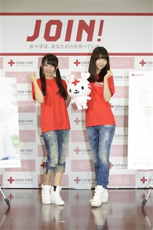 ☆28日、日本赤十字社が上智大学で記者発表会を開催、AKB48メンバーが同大の学生とともにボランティア活動への若者の積極的な参加を呼びかけた。日本赤十字社は、全国各地でAED講習会、献血事業、地域のボランティア活動を支援しているほか、国内外での災害救護活動も実施している。直近では東日本大震災の被災地へのボランティア派遣、徳島県の台風災害、京都・兵庫の大雨災害、今も不明者の捜索活動が続く広島県の大雨災害の義援金取りまとめ・救援物資の配布活動を行っている。また、海外においては西アフリカでの「エボラ出血熱救援事業」、パレスチナでの「ガザ人道危機救援金」、イラクでの事業も行っている。こうした活動を支えているのは賛同者から寄せられた会費や寄付金、ボランティア参加者だ。日本赤十字社では、活動への若者の認知を高め、賛同者・参加者の輪を広げることを目的に2011年からAKB48のメンバーを起用したPRキャンペーンを実施。AKB48のメンバーも、これまで月1回の被災地訪問を続けているほか、献血の呼びかけなどを行ってきた。また、上智大学は、ボランティア活動に携わる若者を育成することを目的に、今年3月、日本赤十字社と連携。ノウハウを共有するほか、学生への参加を呼びかけている。この日の発表会には、柏木由紀さん、木崎ゆりあさんが参加。被災地での炊き出しや、子どもたちと遊んだ経験のある木崎さんは「私たちが元気をもらって帰ってきた」と話した。4年前のキャンペーンスタート時から参加している柏木さんは、「AKB48メンバーだけでなく、AKB劇場のスタッフもAEDの操作法研修を受講しているので安心です」とアピール。二人はAKBグループを代表して「家族には"ボランティア活動なんてできるの?大丈夫?"と心配されたけど、私でもちゃんとできるんだよと話すことができた。」「人の役に立つと言っても、何から初めていいか迷うと思います。でもボランティア活動に参加すれば、すごく簡単に人の役に立つことができるので、難しいことだと思わずに参加してみて欲しいです」と訴えていた。