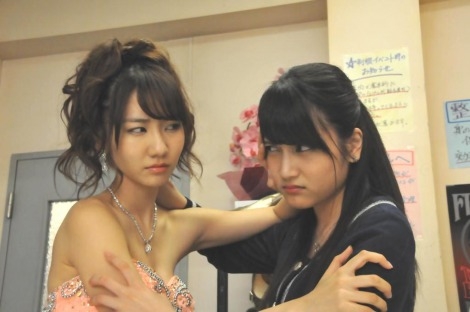 ☆テレビ朝日系ドラマ『黒服物語』(毎週金曜 後11:15※一部地域で異なる)の第3話(11月7日放送)で、キャバクラ嬢を演じるAKB48・柏木由紀と入山杏奈が取っ組み合いのけんかをしていることが30日、わかった。入山は「この泥棒猫!」と柏木に掴みかかり、柏木は入山に平手打ちを食わす。柏木が「あんにん(入山)にすごく迫力があったので、わたしもそれに乗せられて…スカッとして楽しかったです!」と撮影を振り返ると、入山は「柏木さん、スカッとしてたんですね…」と引き笑いしていた。 同ドラマは、倉科遼氏の同名漫画を原作に、医大受験に3度も失敗した冴えないおぼっちゃま浪人生・小川彰(中島)が、池袋のキャバクラで働くことになり、欲望渦巻く夜の街でのし上がっていく姿を描く。 ひとりでも多くの指名を勝ち取るため、日夜地道な努力と女同士の静かなバトルを繰り広げているキャバ嬢たち。該当シーンでは、以前からくすぶっていた火種がついに爆発する。自分の客を美樹(柏木)に取られたと思った聖子(入山)が「この泥棒猫!」と美樹に食ってかかると、美樹も「あんたの努力が足りないだけでしょ」と言い返し、ふたりは一触即発状態に。さらに聖子が美樹の担当黒服である小川のことを侮辱する発言をしたため、美樹の怒りは沸点に達し、聖子に平手打ちをする。 AKB48のステージやバラエティー番組など普段では決して見ることができない、感情をむき出しにした演技に挑んだ二人。AKBグループでは先輩である柏木に、入山がけんかをふっかけるなどということはあり得ないだけに、撮影前の入山はかなり緊張していたという。 ところが、撮影中の入山は「掴み合いのけんかなんてAKBでは絶対にありえないことだから、なんだかおかしくなっちゃって」と話し、「無言でにらみ合う場面では思わず笑いそうになってしまって、カットがかかるまで必死にこらえました。セリフもなく、ただにらむのはつらかった」と述懐。 一方、柏木は「あんにんが“先輩・後輩”を気にするタイプで、いつも敬語だし、『柏木さん』って呼ぶし(笑)。なので、今回、すごい勢いで掴みかかられて『この泥棒猫!』と言われたときは、びっくりしました。普段とのギャップがすごくて、『あ、あんにんってこんなに怖いんだ』と新鮮な気持ちでした」と振り返っていた。