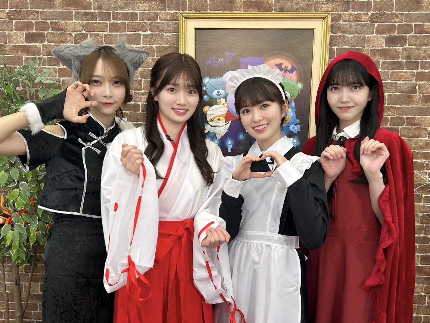 ☆今回の『猫舌SHOWROOM』は、乃木坂46各期から代表して一人づつ登場して『ハロウィンP🎃』を放送することに。3期生からは「久保史緒里」(赤ずきんちゃん)、4期生からは弓木奈於(オオカミ)、5期生からは「小川彩」(メイドさん)、6期生からは愛宕心響(巫女さん)のコスプレで登場!🎃👻✨