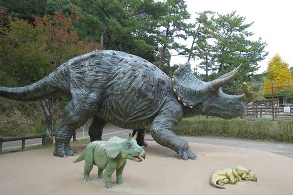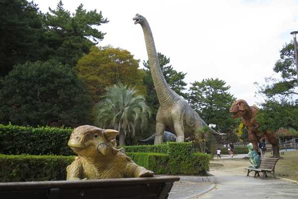メイン広場には実物大の恐竜のオブジェが数匹ある。