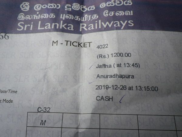ジャフナ発の電車は1等車しかなかった。