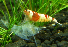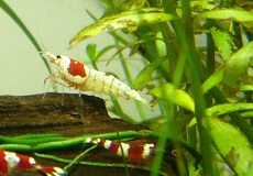 寂しさに負けて黒びーを追加しました。最近黒びーがになって少なくなってきてました。赤びーもいいですが、黒びーもいいもんです。今回の黒びーは、ちょっと遠くのお店で▼白黒バンドビーシュリンプ“日の丸”(1匹)全部白黒だとあれですが…沢山の赤白びーに白黒びーが数匹群れている姿はいいもんです白が濃いと黒も輝いて見えてシャープな感じでオシャレに見えます。今の所、育てる事に一杯で遺伝の法則を知りません黒い稚エビが産まれる事もあるのでしょうか?せっかく来たんだし、血が濃くならないようにと言い訳しながら…白の濃い赤びーも買っちゃいました去年は、衝動買いなんてできなかったけど…調子に買っちゃいましたそれはそれは慎重に水合わせ温度合わせを行ってから放流ですそんな作業をしていたら…アヌビアスの根本に新たな赤びーの稚エビがよく見るとアチコチにいます今週は満月抱卵びーもノコノコ2匹歩いてました。血が濃くならないようにと追加しましたがこのままじゃ一杯になってしまうかも知れません話は変わって勢いが落ちて、頭を下げて女房から逆輸入したりしたこのアヌビアスたち。新葉もポコポコ出始めて元気が戻ってきました他の水草達と同じで栄養不足だったみたいです。液肥をちょっとづつ入れていたら復活しました苔もでないような環境で、新葉が久しく出ない時には貧栄養を疑う事も必要かも知れません。水草の栄養素!Plants Greenプランツグリーン250ml魚のいないびー水槽の水草の勢いが急激に落ちてきました。ソイルの一部入れ替えと固定肥料の埋め込みなどでロタラとかバリスネリアナナとかは復活合わせてこの液肥も少量使用。アヌビアスも新葉がでるようになりました直接水槽には入れず、水を作ったバケツに時々ワンプッシュ苔が怖いので、元気が戻ったので今は使用を控えています苔がするような事はありませんでしたが水槽の様子を見ながら本当に少しづつ使用する事が大事です。お約束みたいな定例使用は危険ですよ。