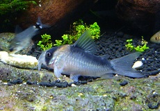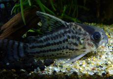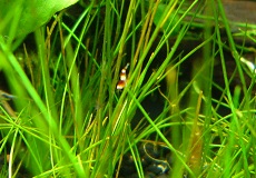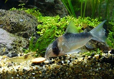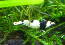 白黒びーが抱卵しました。どんな稚エビなのか楽しみです白黒ままが無事なら今月末には、出会えるかなぁ~もう暑さの峠は過ぎたし、大丈夫、だいじょうぶ。発見がもう一つなんと白黒稚エビが歩いているではありませんか白黒だけどよく見ると少し赤っぽい感じがします。でも赤白びーとは明らかに異なります。2匹見つける事ができましたきっと赤白ままと白黒ぱぱのべびーでしょう。もう結構大きくなってます。同じ大きさの赤白の稚エビもいるので兄弟で黒が表にでたのと赤が表にでた2種類がいるんだと思います。毎日見ているのに、この大きさになるまで気が付きませんでした。びっくりです小さい時は色が薄めなので見分けがつかないのかも。餌に群がる大きいびーの下を右往左往しながら活発に動きまわっています。女房のなっちゃって水槽も夏を乗り越えました。冷却ファンだけの、かなり厳しい環境でしたプレコ一匹、オトシン1匹とアドルフォイ1匹グローライトテトラ1匹、ランプアイ1匹が夏を乗り越えましたそうそうミナミヌマエビはこの環境でも増殖してます1匹残ったアドルフォイ君はずいぶん大きくなりました。最後に報告を1つ新しく水槽を立ち上げる事にしました。やっと政権党(女房)と合意規模は縮小ですが再開へ一歩前進です。つづきはまた来週。▼コリドラス・デュプリカレウス(ブリード)(1匹)うちのはたしかアドルフォイだったと思うのですが、デュプリカレウスとそっくりです。そこそこオヤジはコリドラスのとぼけた顔がお好みです。今度立ち上げる水槽はコリドラス向きの砂地を用意したいとアレコレ思案中。もちろんアドルフォイ君は呼び戻すつもりです。