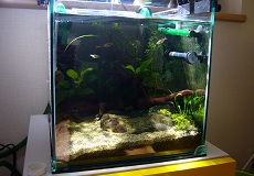 正月も終わり慌ただしい毎日が始まってます。は、びー水槽と女房の20cmキューブ。この椅子に座って心を癒してます写ってませんが、すぐ近くに30cmキューブもあります。びー水槽の台は60cm水槽用なので、本当は60cm水槽を復活させたいんですがねぇびー水槽は、ソイル掃除のおかげで、調子を落としていた有茎草が元気になってきてます。ただ、前景の芝生の生長が完全にストップソイルの入れ替えとか思い切った手当が必要かもでもねぇ~水質の変化にデリケートなびーがいるので…思い切った事はできません。30cmキューブは3ヶ月経過したので、かなり水草が生長しています。流木裏左の緑の細いクリプトコリネ・ルーケンスという水草。狙い通り背丈はあまり伸びず順調です。2株に分けて流木にしばりつけたアヌビアス・ゴールデン。これも明るい緑の葉っぱをゆっくりと増やしています。前景のソイルに埋めたキューバパールグラスは…だいぶ寂しくなりましたが、やっと定着してくれたようです枯れ始めてもうダメかと思った時もありましたこのそばにも、ルーケンスを1株植えてます。最近近くに新しい株が出てきました。あとから植えたブリクサは、流木に隠れてひっそり生きていますが、風前の灯です。無農薬!■クリプトコリネルーケンス(1ポット分)クリプトコリネ系の水草は初めて買いました。ルーケンスは小ぶりなので前から興味を持っていました。お手頃価格丁寧にバラすと10株ぐらいになりました30cmキューブでは、1株だけ右手前に植えてあとは後景としして植えました。高温さえ気をつければ良い簡単な水草みたいです。残留農薬処理済!■ライフマルチアヌビアスナナ ゴールデン(1個)30cm水槽のレイアウトにこのアヌビアスゴールデンを使いました。ライフマルチは外して、2株に分けて流木と石に結びつけました何枚か普通の色に近いものありますが新しい葉っぱが増えるにつれ普通のアヌビアスより明るい種だと実感できましたちなみにアヌビアスは生長する方向があるので、伸びる方向を意識して流木や石に活着させないと後で後悔するので要注意