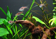 4/12女房より早く帰宅。すると・・・また部屋が水浸しになっていました3/11の地震では水槽の半分の水が水浸し本体は無傷だったので復興できたんですが今回は、クラックが入って駄々漏れ万事休すもう立ち直れません確かにちょっと強めの地震はあったのですが、大騒ぎするほどでは無かったのに・・・なぜ上から下までパックリ左側面にヒビが入ってます。GWでアクアリウムにはまって丸2年のanniversaryレイアウトをリセットをして丸1年。ようやく仕上がってきて、今年は何をしようかと考え始めていたのに・・・くっ・・・何はさておき、その日は深夜まで部屋の掃除に追われて疲れ果てました。 帰宅した時には、水は残り数cm徐々に水位は下がって行きます床の掃除もさることながら、浅瀬に集まっている達も救わなければなりませんバケツに急いで水を作って、水合わせもせずに移送しましたゴールデンブッシー、コリドラス、オトシンは全員無事テトラやランプアイは数匹行方不明ですここまで育てた水草は、ちょっとだけびー水槽に植えましたが、大半は植える所がないので諦めました。残念です・・・そんなに酷い地震ではないのに割れたのは多分、このランプの取り付けが原因です。人間の感覚で取り付けると、厳密には壁面と平行にならず多少斜めになっていたりするんだと思います。遊びなしで取り付けてしまうと地震とかで引っ張られたりした時に変な力が水槽に加わってピシッていっちゃうんじゃないかと2度目の水害で、女房からも1年間の禁止令が出てしまいましたガラスを挟むネジに遊びを持たせるべきでしたガッチリ締め付けた事を後悔しています。余震はまだまだ続くらしいし、さすがにメゲてます。このようなタイプのランプを使う場合、多少カタカタするぐらいで取り付ける事をお勧めします。落ちない程度に今は地震恐怖症気味。しばらく大きい水槽は封印。びー水槽だけで大人しく過ごします。とりあえずコリドラスとブルーアイブッシープレコとオトシンは、女房のなんちゃって水槽に移動。信頼できる人にテトラ達は里子に出しました大事に育ててもらって下さい。そんな騒ぎも知らずにビー達は、今日も元気です。ちなみにこんな事情からか、お魚ポストに捨てられる魚が増えているらしいです。わりと近いところにあるのですが、できれば使いたくないと思います。主役級の存在感!▼ディープレッドホタル・テトラ(4匹)赤い色の魚が欲しくて手に入れたテトラです。育成も簡単です。届いた直後は、色が薄いのですが、1ヶ月もするとサンプルぐらいに色が上がってきます。水草の緑に映える赤が綺麗でした。長い間ありがとう。 ▼グリーン・ネオン(10匹)これも長い間、そこそこ水槽で暮らしていました。育成も簡単です。ライト点灯直後は、紫色に見えます。うちのは、少し太ってしまって鮒っぽい体型になってしまいました。長い間ありがとう。その他、アフリカンランプとミナミヌエビも一緒に里子に出しました。みんな元気で。