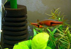 立ち上げから3週間何をいれようか色々考えていたのですが元気に泳ぎ回る魚としてコイ系のラスボラ・ヘンゲリーを選びました。ナイキ柄でスポーティな匂いがする魚です。もう少し黄色い感じを期待していたのですが、こんなもんでしょう。あとはアドルフォイが入手できなかったのでコリドラス・ハステータスという小さな魚を選びました。ちょび髭のとぼけた顔に一目ぼれです残念ながら臆病でじっとしてないと表にでてきません。を撮るには相当の根気が必要です。それから、がんばってるのに苔がじわじわでてきました育成中のキューバパールグラスを抜かれる事が心配だったけど苔の方が嫌なので苔バスター達を招聘しました。女房のボトルアクアからヤマトヌマエビと石巻貝を一匹づつ、ミナミヌマエビを6匹入れました。たちまち綺麗になって一安心でも、キューバパールは抜かないでねハステータスは、群れながらあちこちをつついて巡回しています。ただ近づくとすぐ奥に行ってしまいますもっと仲良くしたいんだけどなぁ~▼ラスボラ・ヘンゲリー(6匹)色んな柄のラスボラかいますが、今回は、ナイキ柄のラスボラ・ヘンゲリーを買いました。こんなに黄色ではなくで、どちらかというとラスボラ・エスペイ色。黒い模様が同じなら区別できそうにありません。活発に泳いでいてテトラ並みに丈夫そう。少々の事ではびくともしなさそうです ▼コリドラス・ハステータス(3匹)今回6匹買いました普通のコリドラスとは違ってわりと中層も泳いだりしています。臆病なのでじっくり見る事なかなかできません。小さくて短命らしく、環境変化にも弱そうに見えます。いつもブルブルしている小さい犬がいるでしょ。そんな感じです。