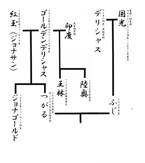 ふじとジョナゴールドってどっちが甘いんだったっけ?と、ふと検索してみたwikipediaリンゴのページ。思いの外興味深い内容で、更に検索してみると詳細な情報を得ることができ、それを読んでいるうちにリンゴたちの壮大なる世代の物語が目に浮かび、勢いあまって家系図を作成してしまいました。便箋に筆ペンで気分は金田一。種子親を母とし、花粉親を父とした、家系図を立て上げてみると彼らが生まれた時期や背景もあいまって、なんだかミステリアス。壮大かつ重厚な世代間の物語。つがるは1930年生まれなのに、1990年までの60年間父親が確定しなかった。紅玉の本名はジョナサン。掲載の家系図には書き込めていないのですが、ゴールデンデリシャスとデリシャスが性別を反対にして生まれた子が世界一、だとか…小説以上にエンターテイメントです。ディジタルで清書しようとしたところ力尽きてしまいました。続きは必ず・・・ふじとつがるの子供がシナノゴールドです。参考サイトhttp://ja.wikipedia.org/wiki/%E3%82%8A%E3%82%93%E3%81%94wikipedia リンゴのページhttp://homepage3.nifty.com/malus~pumila/tabl_1/tabl1.htm青い森の片隅から│りんごの品種 お勧め!素晴らしい情報量です。りんごたちの物語に感動を覚えました!本日の家系図家系図といえば病院坂の首括りの家です。映画と原作ではかなり違いがあります。あまりにもややこしく分かりづらかったのでどちらも実際書いてから読み、観ました。家系図love!