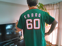 ブログ更新に、四苦八苦です。大阪で楽天イーグルスファンをアピールする為に東北グリーンユニフォームをゲットしました。なかなか XL がなく苦労しました。只今、我ら勧野甲輝レプリカ制作中です。背番号60と上のネームを、KANNOかKOHKIで迷っています。Lサイズ入る様に、痩せておるぞー。!!!