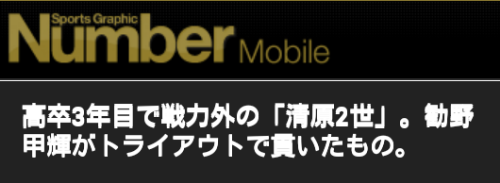 勧野甲輝選手!ナンバーモバイルで苦悩の戦力外通告からソフトバンクホークス育成までのを、赤裸々に語る。 すいません!。直接アクセスする記載方法が、わかりません。ゴメンなさい。 手動入力お願いいたします。 RYOUパパより