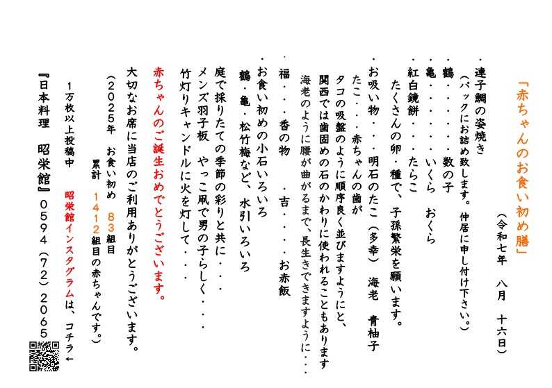 お子さまの門出を彩る日本料理「赤ちゃん… 2025.10.12