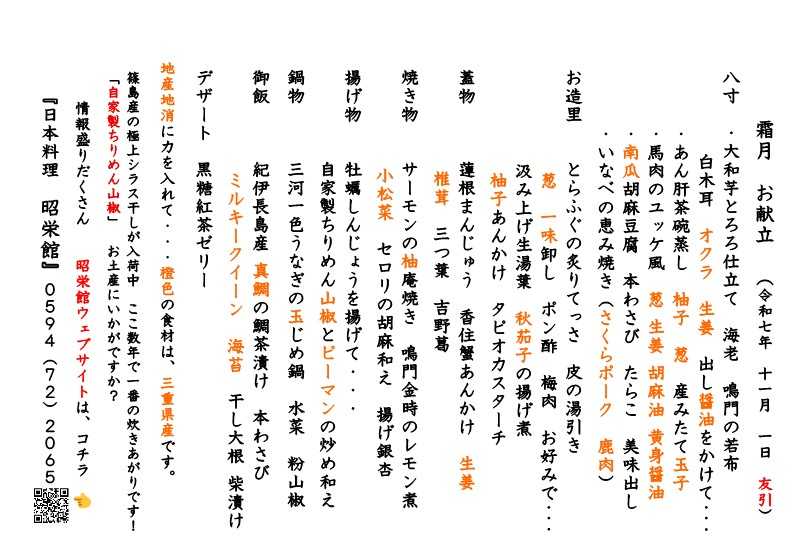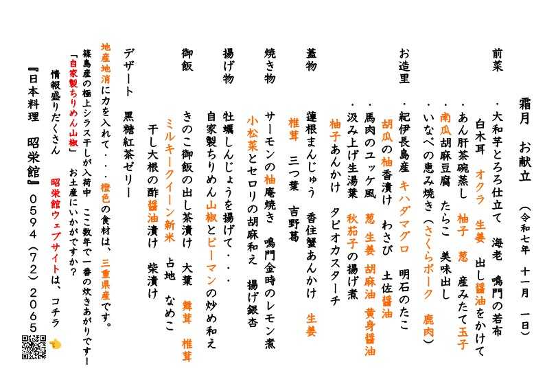「料理長の日記」  三重県いなべ市             阿下喜(あげき)の日本料理 昭栄館