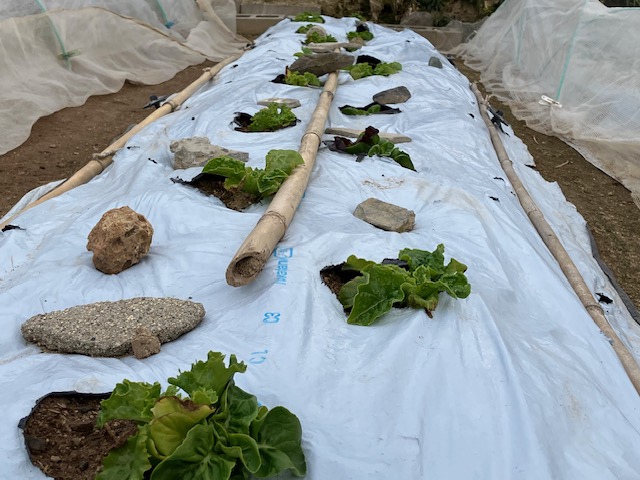 ◇ビニトンなしで植えているリーフレタスです。色が黄色から緑に変わってきました。