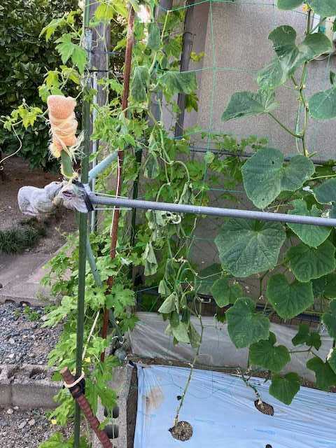 今年は初めて秋どりキュウリを育てていますが、両端の株の成長が遅い中、1本だけ突然立ち枯れてしまいました。根を抜いてみるとぶつぶつの塊があり、センチュウ被害かもしれません。詳しくは分からないので、念のため周囲にマリーゴールドの花や茎を混ぜ込んでみました。一方、昨年のゴーヤ栽培のこぼれ種から時季外れに発芽したものが、この時期に収穫できるようになり、昨日3本目を収穫しました。しっかりした形で虫食いもなく立派なゴーヤでした。にほんブログ村家庭菜園ランキング◇立ち枯れてしまった秋どりキュウリの株です。◇引き抜いてみると根がぶつぶつで一杯でした。センチュウでしょうか?◇キュウリの畝全体の様子です。小さなキュウリがたくさん成っています。◇こぼれ種から大きくなったゴーヤに実が成っています。◇収穫したゴーヤです。一緒に写っているのは、こちらもこぼれ種から大きくなった漬物ウリです。◇ゴーヤの株全体の様子です。あと数個ゴーヤの実が成っています。収穫までたどり着けるでしょうか?ランキング入賞【2点550円/3点900円OFF】遮光ネット 日よけ シェード 遮熱 屋外 日除けシェード サンシェード クールシェード ベランダ フェンス 駐車場 庭 屋外 目隠し 風通し UV対策 遮熱ネット 暑さ対策 熱中症 簡単取付 2x3m 3x4m 4x5m[楽天] #Rakutenichiba「遮光ネット」 クリック!【きのくに種苗店】種が、近くのホームセンターにないときは、450円以上送料無料なので、きのくに種苗店で購入するのがお得です。クリックしてください!7/1 19時〜22時限定エントリーでP5倍!家庭用小型ハウス 温室 300×200×200cm シンセイ 菜園 ビニール ビニールハウス