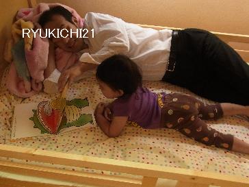 家族5人で川の字に並んでギュウギュウな感じで寝ていましたが、長男りゅうきちさんが「ポリンさんと一緒だったら子供部屋で寝られる」と言い始めたので、「それ!気が変わらないうちに!」と2段ベットを購入。喜んで寝ていますが、「夜中に目が覚めた時に、大人がいないと怖いから、パパもこっち(子供部屋)で寝て」と言うことで、一気に人口密度が減りました。これで夜中に狭すぎて何度も目を覚ます事がなくなるわ~と思っていましたが、意外にアヤさんの寝ぞうが悪く、ゴロゴロ転がってくるので、油断なりません(>_