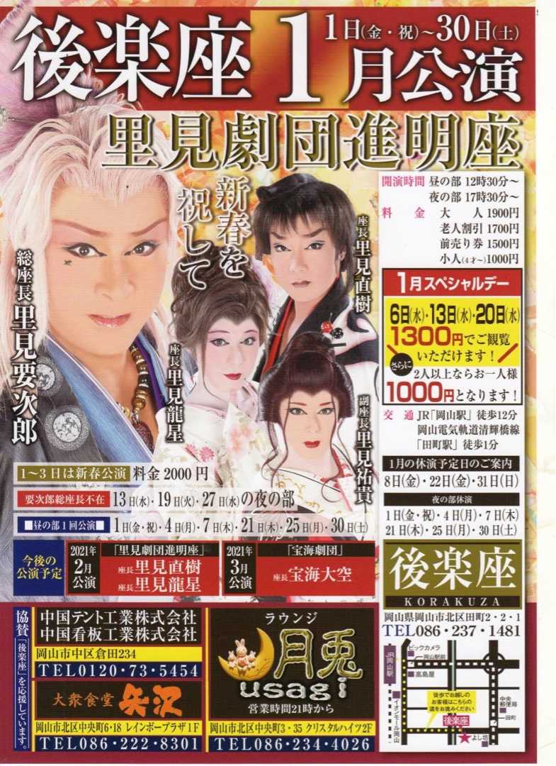 おはようございます!!! 毎日寒さに負けずに頑張ってまーす!!! さてさて、今日は11日ー!!! ホントなら今日は若手祭りだった日。。。 それがコロナで出来なくなったので 代わりと言っちゃなんですが、 今日は若手が頑張る日として、 お芝居も役変更で舞踊も数を増やして お届けしまっす!!! きっと楽しい舞台になるでしょう!!! とにかく今日も精一杯ポジティブに 張り切って行くぜぃ!!!
