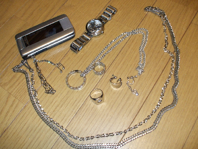 今日で全教科揃いました。まとめると、現文:46/50点古典(必修):43/50点英語:95点世界史:92点地理:89点古典(選択):76点生物:54点数学:18点ってなカンジで。しかし数学はひどいなぁ;;今日は生物と選択の古典が返ってきました。ほとんど聞いてなかった生物が平均を越した奇跡。選択の古典はいつも70点台;;で、修学旅行の準備もぼちぼち。ファッションも決まりつつある今日この頃ですが、心配なコトが一つ。俺、絶対乗る前の検査で引っかかる。以下、装飾品です。これだけの貴金属がついていれば間違いなく……ウン。どうしよう…;;