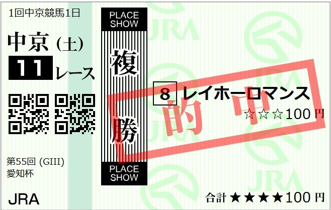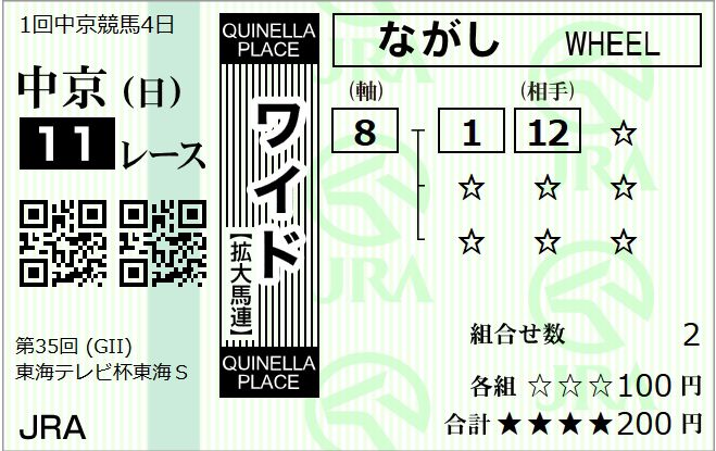 去年はエアスピネル複勝で微妙な的中でしたが ワイドなら・・ おkでしょー (*'ω'*)ドヤ