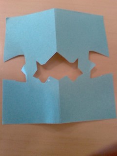 長女が 『星を作ってみた』と言って見せてくれた切り絵! どう見ても UFOだ(^_^) 星を作ったら UFOに! 恐るべし我が娘!