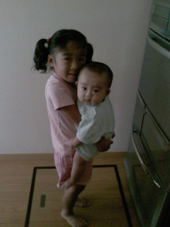 朝食の支度をしていたら光輝『ウェ~ん』 柚芽『あら、ピカッ!おっぱい飲みたいのぅ?チュウチュウする?』と なんとも頼もしい姉。 柚芽『よしよし、ネエねがいるからね。』 僕『助かるなぁー、ありがとう』 柚芽『ネエ、daddy重たいよぅ汗』 えっ!重たい? 横を見たら 姉に抱っこされて喜んでいる光輝が(笑) ありがとうの前に 『大丈夫?無理しないでね(笑)』が口から そしてパチッて撮影。 ちびっこママさんに 子守りをまかせて良いものか? ハラハラしながら 『そらぁ!天空ぁ!何してるんだぁ』 見当たらない弟? 『出たぁ!ウンチイエーイ!daddy出たょ』 1日の始まりは こんな感じ(笑)