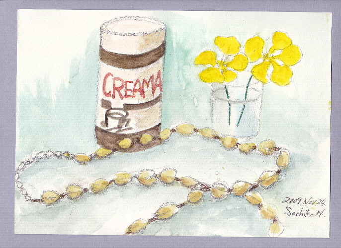 恐い名前のげんこつシュークリーム お友達からいただいて あけてびっくりです でも 見るからにおいしそうで安心しました おすもうさんのげんこつくらいジャンボです すぐに食べました 大きく口を開けないとクリームだらけになります この絵は真上から描きましたから、その大きさがでませんでした 描き上げて置いておくとこの寒いのに小さい虫が食べに来ました わたしの絵がおいしそうに見えたのでしょうか? すぐそばに実物があるのにね 人気ブログランキングへクリックお願いします ご訪問ありがとうございます。