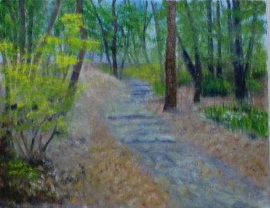 油彩画 F6号 石段のある山路 今夜は何を入れようかと考えていると画面はいちめんの真っ赤のチューリップ 何本あるかなあ 数えられるかななんて思っていてかんじんの考えがでてこない すると画面がまた変わった黄色い楓かな と 今度は菜の花畑 夏になると変わるのかなあ まさかスイカが現れる? けっきょく アイデアはうかばないので おやすみなさい 人気ブログランキングへクリックお願いします ご訪問ありがとうございます。