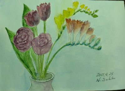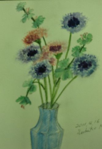 今夜は気合をこめていつもよりながい文を入れたのに さっと消されてしまいました 午後買い物に出ていつも立ち寄る画材店で ご主人の熱のこもった芸術のお話をうかがって疲れていました 夕食後この絵を描き上げて 気合をいれて長文のメッセージをいれたところで いじわるんぼにけされてしまいました 10時に終わる予定が狂いました 人気ブログランキングへクリックお願いします ご訪問ありがとうございます。