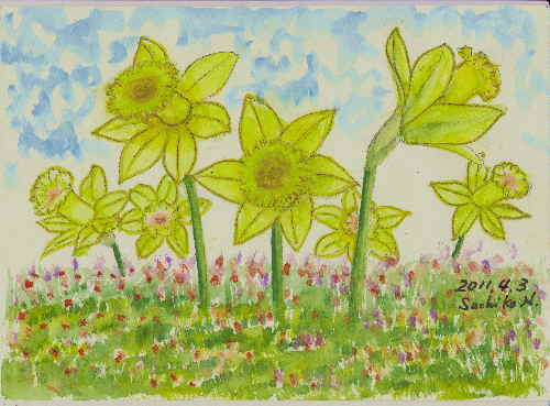 黄色い水仙をたくさんいただきました あまりよい名前でないけれど「ラッパ水仙」と形から わかりよいのですがほんとうはなんというのでしょう 洋水仙というのでしょうか お絵描きの材料にこまっているというと いつも気にかけてとっておいてくれます きのうはおしたしにするほどいただいて 形が端正なので一本だけ描こうかそれとも 塊で描くのがいいかと考えました どうしてもうまく描けません 困ったなあ 今日はお休みにしょうか 良いアイデアがでてきません そんなに毎日うまく描けるはずがありません 拙い日も苦心の跡をごらんいただければと 厚かましくもアップしています人気ブログランキングへクリックお願いします ご訪問ありがとうございます。