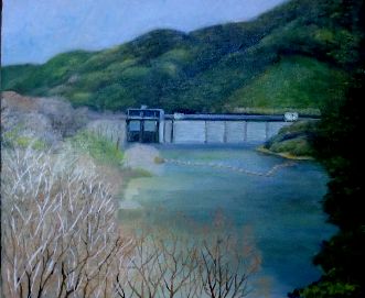 油彩画 F20号 ダムのある風景 お掃除していると蛙がでてきました鮮やかな緑いろでした ぴょんぴょんと元気です先日見た泥色だったあの蛙が今日はパリっとドレスアップしていますはや田植えをすませたところでは小さな苗が心細そうに風に耐えています 地球なんて宇宙からみれば塵みたいなもの その地球がある日こわれてばらばらになっても不思議はない なんて思いが湧いてきてまさかと否定できない気持ちになった 原発だけでなく近くの山が突然爆発するかもしれない いままで何を信用して大丈夫と思っていたのだろうか 大丈夫なんてどこにもないんだとわかった 自分の体でさえ健康だとおもっていても とつぜん動けなくなるかもしれない 人間はそんなあやういところでいきているということをわすれないように 人気ブログランキングへクリックお願いします ご訪問ありがとうございます。