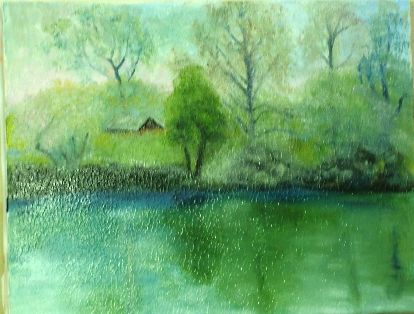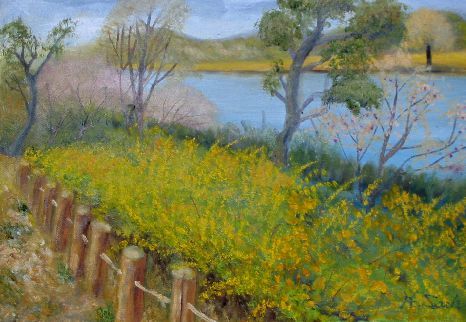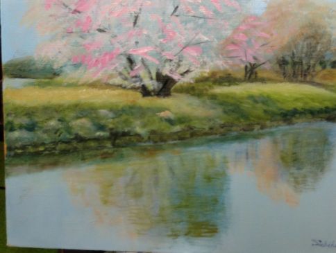 岸辺の桜 油彩画 F10号 (写真の写し方がまずくて上と右がわが切れました) 昨日の3時ごろ雷雨と大粒の雹に驚きました お絵描きしていたから見たわけではありません トタン屋根の物すごい音 雹とはきづかず けさ 新聞を見てわかりました 梅の木にきらり(あぶらむし)がべったりついて洗濯物が汚れると隣家からしらせてくれました 展覧会の準備でそんなこと考えているゆとりがないのですが どうしましょう もう1週間待ってほしいのですが 人気ブログランキングへクリックお願いします ご訪問ありがとうございます。