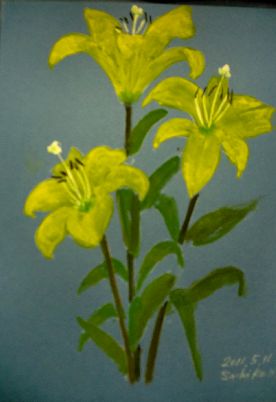 つぼみでいただいた黄色いユリが5本全部そろって咲きました ほとんど同じ形 同じ大きさです でもよく見ると元気で色つやがよいもの 衰えかけたものと 花の寿命の違いが表れています 玄関先でたくさん咲いていたフリーじゃも矢車草も もう疲れてきたので捨てました 代わって 我が家のカサブランカとすかしゆりが出番をまっています きゅうりが元気よく伸びてあのか細い蔓で支柱にしがみついています 人気ブログランキングへクリックお願いします ご訪問ありがとうございます。