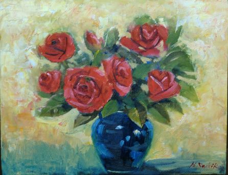 紅い薔薇 油彩画 6号F 5月は薔薇の季節です どのバラも一生懸命美しく咲いています 赤もピンクも白もいろいろ混ざった色も それぞれに美しいです 2,3年前にいただいた3本の鉢植えのバラがあえりますが 一本だけつぼみがつきません 同じように水も肥料もあげているのに 今年は花を咲かせる気持ちになれないのでしょうか それとも咲く時期を忘れているのかもね 人気ブログランキングへクリックお願いします ご訪問ありがとうございます。