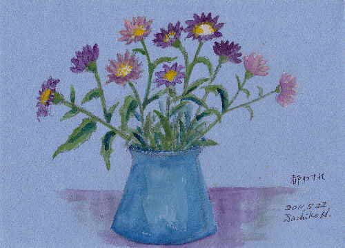 花の色は美しい アイリスのむらさき 都忘れのむらさき 紫の花はいろいろあるけれど えのぐではこんなに美しい紫はでないようだ ブルーに近いむらさきをつくろうとしてもできない いつ描いても紫の花の色には幻滅を感じる 思うむらさきがつくれない 人気ブログランキングへクリックお願いします ご訪問ありがとうございます。