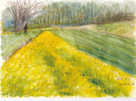 菜の花畑の一面の黄色を見ていると元気になる 何かしら力いっぱい出し切って新しいことに挑戦してみたくなる気分です だから描いていてもうきうきしてきます 嘘だと思ったら試してみてごらん 地デジのはなしだけど年寄りにはテレビはなれになるでしょう みたいものがスーと出てこない ふしぎだなあ 衛星と地デジの切り替えをしなければならないチャンネル番号を忘れて新聞でたしかめるめんどくささ そんなに見たいものはだんだん少なくなってきている年寄りのすきなNHKが面白くなくなったからやがてテレビがいらなくなると思う人気ブログランキングへクリックお願いします ご訪問ありがとうございます。