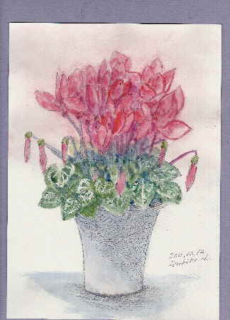 生まれて初めてクリスマスプレゼントをいただきました しかも男性からです かわいいピンクのシクラメン 今日のお絵描きは力が入りすぎてたっぷり3時間まずいところだらけですが まあいいかご褒美にお花のプレゼントいただいたから 人気ブログランキングへクリックお願いします ご訪問ありがとうございます。
