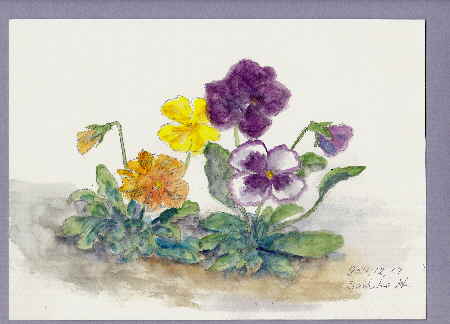 パンジー F3号 油彩画 19日にアップしました作品をしあげました お友達にもらっていただくつもりですが お気にいっていただけるといいのですが お昼すぎにおいしそうなりんごを2個いただきましたいい香りがにおってきます そのリンゴの香りの中でパンジーを描きました ああ 今日さつまいもを食べるつもりだったのに お絵描きに夢中になって忘れていました あすは何を食べましょうか りんご? さつまいも? バナナ? 食べ物がたくさんある幸せ 感謝です 人気ブログランキングへクリックお願いします ご訪問ありがとうございます。
