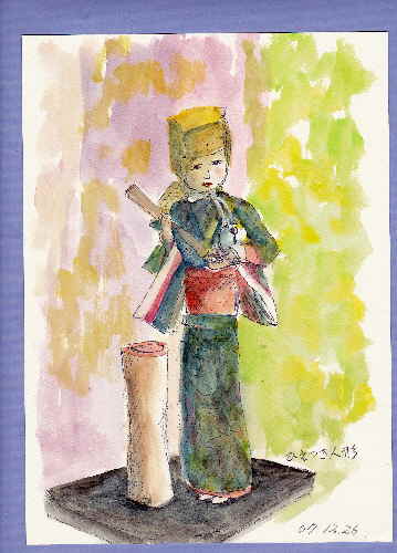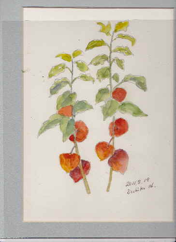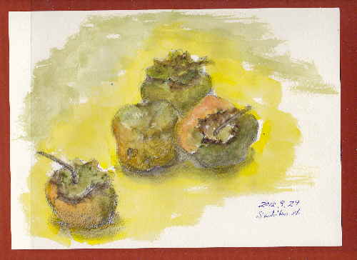 ぱったりと道で出逢ったおっちゃん どこのだれか知らないのに 柿をくれるといって シルバーカーにくくりつけてくれて にこにこ笑顔をのこして そのあたりの路地に消えた 小ぶりの 枝のついている柿を 描きながらにこにこおっちゃんを思い出している ところがおまけがありました 何でしょう? 多分当らないでしょう みのむしさんが2ひきお柿にくっついていました人気ブログランキングへクリックお願いします「さっちゃんのお気楽ブログ」のポストカードをご希望の方は 下記「手づくりの店 本郷」さんにお問い合わせください。 ---------------------------------------------------手づくりの店 本郷 〒776-0010徳島県吉野川市鴨島町鴨島233-1Blog : http://ameblo.jp/hongo-blog/TEL : 0883-24-3711E-mail : secchan@brown.plala.or.jp----------------------------------------------------ご訪問ありがとうございます。