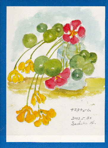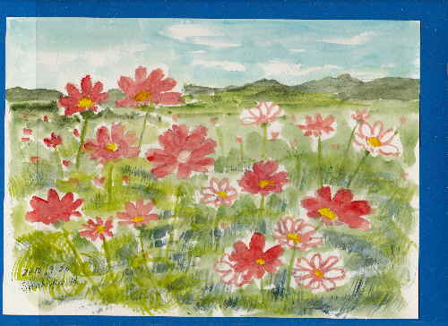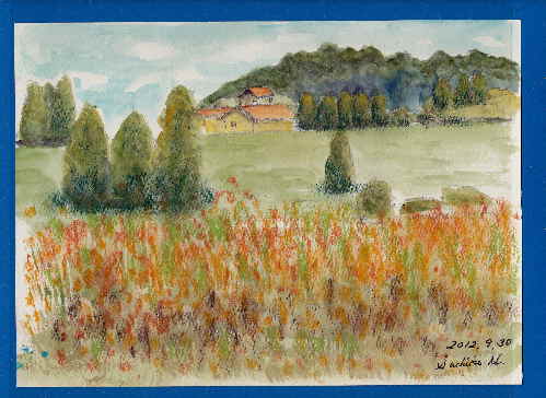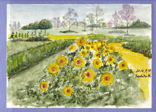 このひまわり畑を描いていると おなかがすいてきました 朝柏餅一個とあんパン半分 おひる あんパン半分と牛乳と梨半分 母がいたらしかられます 「ごはんのまえにお菓子を食べたらいけません ご飯が食べられなくなるでしょう」と ごはんはあるけれどおかずを作ると 時間がかかるのでーーーー 健康を考えると手抜きしないで 手間暇かけて、おいしいおかずをつくるべきです でも、時間がなくなると眠くなってねてしまいます。人気ブログランキングへクリックお願いします「さっちゃんのお気楽ブログ」のポストカードをご希望の方は 下記「手づくりの店 本郷」さんにお問い合わせください。 ---------------------------------------------------手づくりの店 本郷 〒776-0010徳島県吉野川市鴨島町鴨島233-1Blog : http://ameblo.jp/hongo-blog/TEL : 0883-24-3711E-mail : secchan@brown.plala.or.jp----------------------------------------------------ご訪問ありがとうございます。