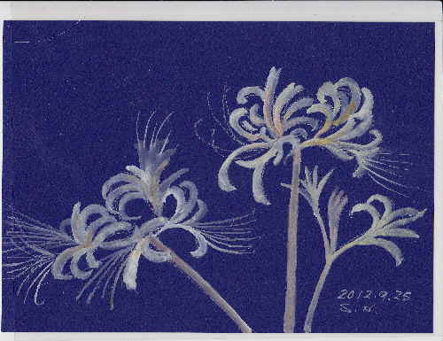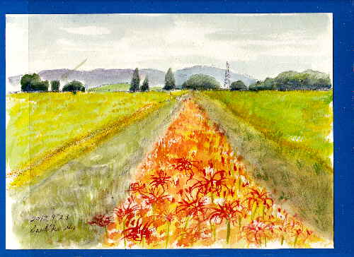 彼岸花の想い出 1945年7月 戦災に遭って、見知らぬ町に住みつきました まもなく終戦となり、山や川は平和に秋を迎えました 山の部落へ行く潜水橋のたもとに一群れの彼岸花が紅く咲きました 川の流れで洗濯する気持ちよさを知りました お釜を持ってきてお米を研ぐ人、対岸では牛を洗っている人 本当に平和でのどかな自然が戻ってきました なにもないくらし、縫うものもない、書くもの、鉛筆も紙もない 毎日何にもすることがない、行くところもない 自然の目の前にある山や川を見て一日一日がすぎていきました 秋の雑木林の色のあのすばらしい美しさを初めて知りました 不自由な暮らしの中で自然の移り変わりに心を癒され 心の糧になっていたことに今になって気がつきました人気ブログランキングへクリックお願いします「さっちゃんのお気楽ブログ」のポストカードをご希望の方は 下記「手づくりの店 本郷」さんにお問い合わせください。 ---------------------------------------------------手づくりの店 本郷 〒776-0010徳島県吉野川市鴨島町鴨島233-1Blog : http://ameblo.jp/hongo-blog/TEL : 0883-24-3711E-mail : secchan@brown.plala.or.jp----------------------------------------------------ご訪問ありがとうございます。