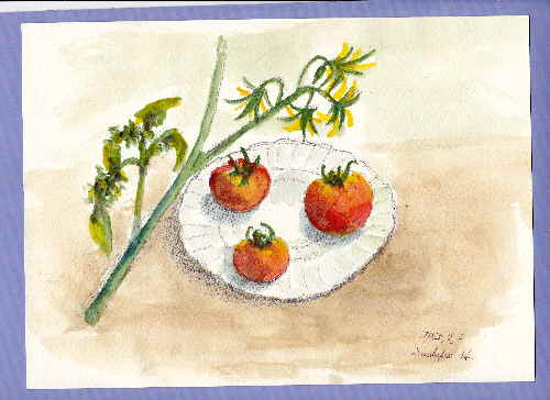 末っ子トマトの三つ子ちゃん 青い小さいトマトの三つ子ちゃんが 見つかって、幾日になるかしら 三日ほど前にピンク色になっていました きょうは真っ赤っかなベビー服 こんなに育つとは思わなかったわ 命の尊さ トマトでさえ確かな命が育つということは 生きているんですね でも、冷たくひやしてぱくりと食べますよ トマトは食べ物です おしらせ 「また、あした。」の発売は9月27日です 人気ブログランキングへクリックお願いします「さっちゃんのお気楽ブログ」のポストカードをご希望の方は 下記「手づくりの店 本郷」さんにお問い合わせください。 ---------------------------------------------------手づくりの店 本郷 〒776-0010徳島県吉野川市鴨島町鴨島233-1Blog : http://ameblo.jp/hongo-blog/TEL : 0883-24-3711E-mail : secchan@brown.plala.or.jp----------------------------------------------------ご訪問ありがとうございます。