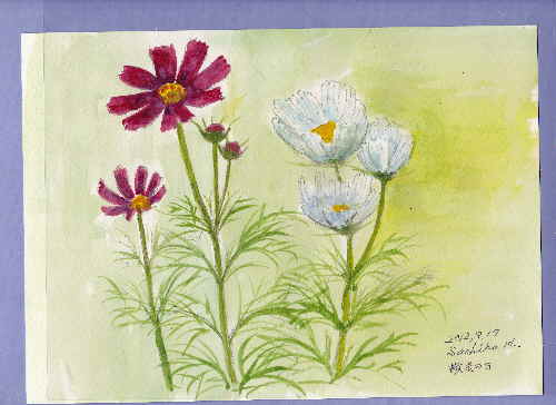 コスモスが風に揺れて秋らしくなりました 明日は四国放送さんが取材に来られます 昨日から声をだしていません 歌でも歌って声を出しておかないとかすれる心配があります 電話がかかってこないかなあ 今朝は特に静かだなあ かかってこなければこちらからかければいいんだが 用事もないのにーーー 寂しくて、電話を待っているお年寄りもいます ねこは しゃべらなくてもいいようですね 犬は時々吠えてストレス解消をしているようですね 人はしゃべらないとノイローゼになるかもね 変な話になりました人気ブログランキングへクリックお願いします「さっちゃんのお気楽ブログ」のポストカードをご希望の方は 下記「手づくりの店 本郷」さんにお問い合わせください。 ---------------------------------------------------手づくりの店 本郷 〒776-0010徳島県吉野川市鴨島町鴨島233-1Blog : http://ameblo.jp/hongo-blog/TEL : 0883-24-3711E-mail : secchan@brown.plala.or.jp----------------------------------------------------ご訪問ありがとうございます。