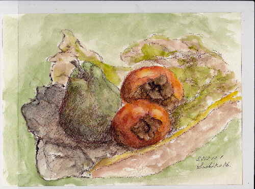 お柿がころりん 「あっ!」 ことん とんとんとん ごろん 持ち切れなくってお柿が落ちた 両手に持ったいろいろあれこれ 運悪く落ちてはいけないお柿が落ちた 大きいお柿に5センチくらいの傷 紅く傷みかけている 人間なら昨夜一晩 ずきずき痛かっただろう 「あっははは、なんともないよ」 「そうだねえ、お柿さんは強いなあ」 とかなんとかいいながら 包丁でザクザク切って 食べました 「ああ! おいしかったよ」人気ブログランキングへクリックお願いします「さっちゃんのお気楽ブログ」のポストカードをご希望の方は 下記「手づくりの店 本郷」さんにお問い合わせください。 ---------------------------------------------------手づくりの店 本郷 〒776-0010徳島県吉野川市鴨島町鴨島233-1Blog : http://ameblo.jp/hongo-blog/TEL : 0883-24-3711E-mail : secchan@brown.plala.or.jp----------------------------------------------------ご訪問ありがとうございます。 「また、あした。」サイン入れます、お正月に読んでみてね。手づくりの店本郷まで アマゾンでは送料無料です。お近くの本屋さんでは取り寄せていただけます。