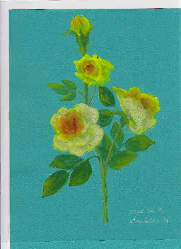きょうはなにを描こうかと考えているうちに 窓の外は暗くなっているのに気が付きました もう時間がありません ひょいと目についた 描きかけの油彩画、xxテレビさんがこられたとき カメラの前で描いていておかしい絵になって 困りました、どうしたらいいかなあと思い付かないまま 日が経ちました。はからずも描きかけのまま登場です。 ちょいとパステルでお化粧してみました。あ はははは!人気ブログランキングへクリックお願いします「さっちゃんのお気楽ブログ」のポストカードをご希望の方は 下記「手づくりの店 本郷」さんにお問い合わせください。 ---------------------------------------------------手づくりの店 本郷 〒776-0010徳島県吉野川市鴨島町鴨島233-1Blog : http://ameblo.jp/hongo-blog/TEL : 0883-24-3711E-mail : secchan@brown.plala.or.jp----------------------------------------------------ご訪問ありがとうございます。 「また、あした。」本屋さんにない時はとりよせてもらってくださいおいそぎのかたはアマゾンか手づくりの店本郷へ申し込んでください