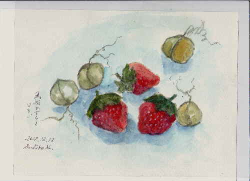銀行へゆくのにたくあんをもっていきました 待っている間匂いが気になりました でも、銀行とたくあんの取り合わせは面白いなあと 考えていました コントのテーマなんかどうかなあ? ところが、思いがけず知り合いの女性行員さんとたくあんと風船かずらを 交換することになりました たくあんをあげるつもりだったお店で絵にかきたいといって ジャンボイチゴをいただいて帰りました 遅くなりましたが急いで描きました 朝ごはんの後昼食抜きです 早くブログをあっぷして食べたいよー人気ブログランキングへクリックお願いします「さっちゃんのお気楽ブログ」のポストカードをご希望の方は 下記「手づくりの店 本郷」さんにお問い合わせください。 ---------------------------------------------------手づくりの店 本郷 〒776-0010徳島県吉野川市鴨島町鴨島233-1Blog : http://ameblo.jp/hongo-blog/TEL : 0883-24-3711E-mail : secchan@brown.plala.or.jp----------------------------------------------------ご訪問ありがとうございます。 「また、あした。」サイン入り手づくりの店本郷で扱っています アマゾンでは送料無料です