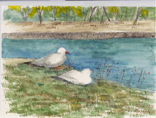 きょうの絵の主役はあひるさんです 師走の寒い日、お天気がいいので ひょこひょこお散歩していました、 仲良く遊んだ後、疲れたようですね ウトウトしているのは男性それとも女性? きょうは12月8日 あの戦争を始めた日です 決して忘れませんよ 戦争を知らない政治家が、また戦争をやってみたい政治家が 出てきそうな感じです 人気ブログランキングへクリックお願いします「さっちゃんのお気楽ブログ」のポストカードをご希望の方は 下記「手づくりの店 本郷」さんにお問い合わせください。 ---------------------------------------------------手づくりの店 本郷 〒776-0010徳島県吉野川市鴨島町鴨島233-1Blog : http://ameblo.jp/hongo-blog/TEL : 0883-24-3711E-mail : secchan@brown.plala.or.jp----------------------------------------------------ご訪問ありがとうございます。 「また、あした。」さっちゃんのサイン入りで、手づくりの店本郷で1000円です アマゾンでは送料無料です