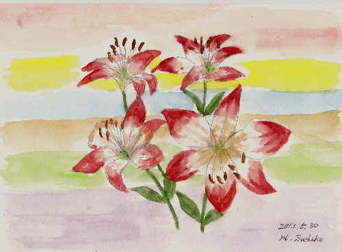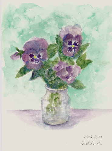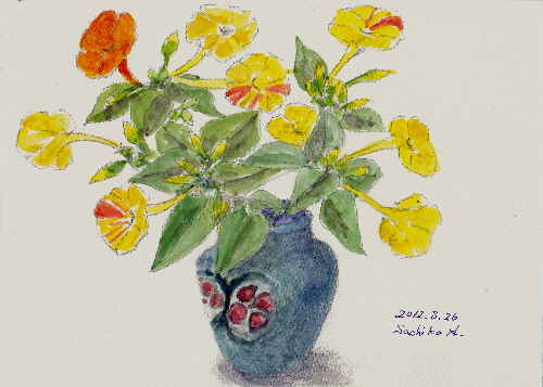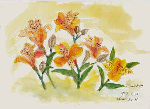 7年昔の絵です 絵の本でみつけて真似したようです でも、何となく心ひかれる作品です 何かを見て描いた絵だとしても 心をとらえるものが感じられれば 大切にしたいと思います 玄関前のお花を模様替えして 季節のお花を植えたいと思いました 鳴門のMさんの御好意にあまえて きょうすっかり美しくしていただきました 例年のようにトマトをうえたけれど 風が吹くと倒れそうで心配でした これもMさんに手伝ってもらって 支柱を建てました もう安心です 後は部屋の中の片付けです 体が自由に動かないのでなかなかはかどりません もう20年若返りたいですね 夢でもいいよ あっははのはです人気ブログランキングへクリックお願いします「さっちゃんのお気楽ブログ」のポストカードをご希望の方は 下記「手づくりの店 本郷」さんにお問い合わせください。 ---------------------------------------------------手づくりの店 本郷 〒776-0010徳島県吉野川市鴨島町鴨島233-1Blog : http://ameblo.jp/hongo-blog/TEL : 0883-24-3711E-mail : secchan@brown.plala.or.jp----------------------------------------------------ご訪問ありがとうございます。 「また、あした。」にサインをしています 手づくりの店本郷までおねがいいたします