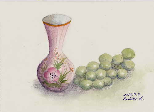 このマスカットの絵は第2回原画展に展示しました きのうスーパーで緑のブドウを売っていました でも、名前がカタカナ語で覚えられません なまえなどなんでもいいんです おいしければそのうちに覚えられます 試食用にお皿にたくさんのっていましたが なんだか食欲が湧いてきませんでした たぶんあまり美味でなかったのでしょう ブドウはブドウの季節に食べましょう どうやら、テーマの道からそれてしまいました すみません 「あっははのは」でした人気ブログランキングへクリックお願いします「さっちゃんのお気楽ブログ」のポストカードをご希望の方は 下記「手づくりの店 本郷」さんにお問い合わせください。 ---------------------------------------------------手づくりの店 本郷 〒776-0010徳島県吉野川市鴨島町鴨島233-1Blog : http://ameblo.jp/hongo-blog/TEL : 0883-24-3711E-mail : secchan@brown.plala.or.jp----------------------------------------------------ご訪問ありがとうございます。 「また、あした。」にサインをしています 手づくりの店本郷までお願いいたします