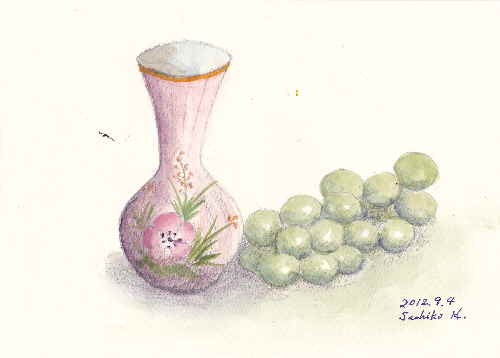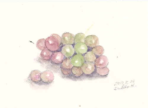 このお菓子のようなきれいな色のブドウ お名前はなんというのでしょう? 一目見た時絵に描きたくなるこのカラー お絵描きするよりまづ試食 色ばかりでなく大粒、お味も最高 マスカットのみどりはすがすがしくていいが このほのかな色どりに魅せられる 一粒一目でお気に入りです ああ、仏さまにあげるよりお先に失礼してしまいました人気ブログランキングへクリックお願いします「さっちゃんのお気楽ブログ」のポストカードをご希望の方は 下記「手づくりの店 本郷」さんにお問い合わせください。 ---------------------------------------------------手づくりの店 本郷 〒776-0010徳島県吉野川市鴨島町鴨島233-1Blog : http://ameblo.jp/hongo-blog/TEL : 0883-24-3711E-mail : secchan@brown.plala.or.jp----------------------------------------------------ご訪問ありがとうございます。 「また、あした。」にサインをしています 手づくりの店本郷までよろしくお願いいたします