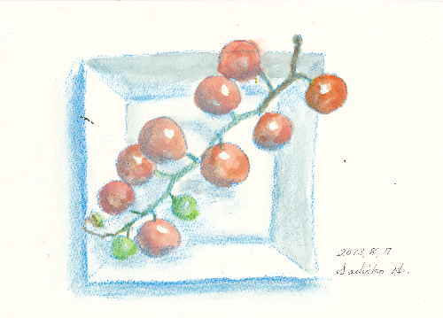 酷暑の夏もようやく半分過ぎました 黄色いミニトマトがグループで手をつないできました 袋の中で競り合いっこしてワイワイ騒いでいます 「ねえ、あんたたちどこからきたの」 「あのね、まっちゃんちの山だよ」 「トマトか? ひとつおくれ」とお父さんがいいます トマト好きのお父さんに早速お供えしました まっちゃんちの山でも作物はことごとく 獣たちに食べられて収穫ができなくてこまっています 全国的な問題なのにその対策については 良い案が思いつかないのでしょうか ぐずぐずしていると全国のお山が けものたちにのっとられてしまって 大変なことになるでしょう 狸たちが縄をはって「ここはおいらの土地だ」 いのししが「だめだよ、そこはおじいさんの代から わしらのものだ」なんて、喧嘩がはじまって 人間が仲裁することになるかもね。人気ブログランキングへクリックお願いします「さっちゃんのお気楽ブログ」のポストカードをご希望の方は 下記「手づくりの店 本郷」さんにお問い合わせください。 ---------------------------------------------------手づくりの店 本郷 〒776-0010徳島県吉野川市鴨島町鴨島233-1Blog : http://ameblo.jp/hongo-blog/TEL : 0883-24-3711E-mail : secchan@brown.plala.or.jp----------------------------------------------------ご訪問ありがとうございます。 「また、あした。」にサインをしています 手づくりの店本郷までお願いいたします