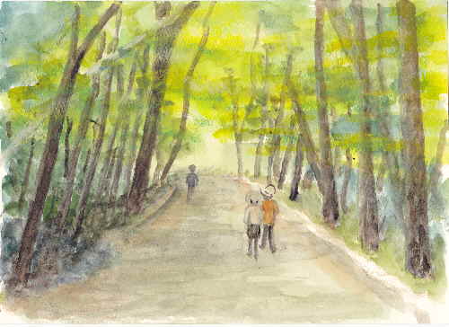 幻の樹林 あれは、たしか城山のふもとの小路をひとり辿っていた そんな寂しい小径をひとりゆくはずがない その時、わたしの怖がり症が消えていた なぜか心の底から楽しさが湧いていたようだ 何かを見つけたのでもなく 美しい小鳥のさえづりをきいたのでもなく 無音の世界にさまよっていたようだ 誰にも会わない小径 湿った樹木の肌のにおうなか からだはかろやかに足を地につけることなく あてもなく木々のあいだをわけてゆく ただそれだけ 何も記憶がない 夢の世界の外側をあるいていたのだろうか 今も時々思い出す不思議な樹林人気ブログランキングへクリックお願いします「さっちゃんのお気楽ブログ」のポストカードをご希望の方は 下記「手づくりの店 本郷」さんにお問い合わせください。 ---------------------------------------------------手づくりの店 本郷 〒776-0010徳島県吉野川市鴨島町鴨島233-1Blog : http://ameblo.jp/hongo-blog/TEL : 0883-24-3711E-mail : secchan@brown.plala.or.jp----------------------------------------------------ご訪問ありがとうございます。 「また、あした。」にさいんをしています 手づくりの店本郷までお願いいたします